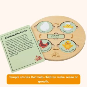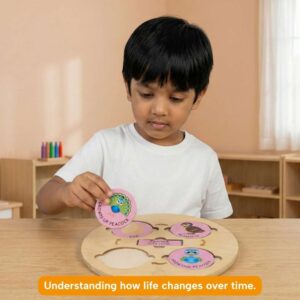 Your child will learn that everything in life grows, changes, and moves through stages. From tiny eggs to new beginnings, they see how plants and animals transform step by step. This builds early scientific thinking while nurturing patience, observation, and a gentle sense of wonder.