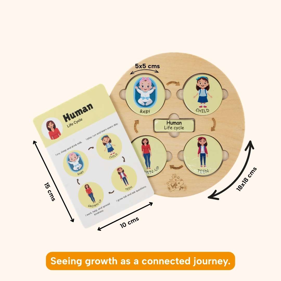 Little Life Loops introduces children to how living things grow and change through simple stories and hands-on sequencing. With life cycles of frogs, butterflies, flowers, turtles, chickens, and more, each stage becomes a visual, easy-to-follow story that helps children understand how life moves from one step to the next. Thoughtfully designed for calm, meaningful play, this wooden set nurtures observation, patience, and a gentle appreciation for how things transform over time.